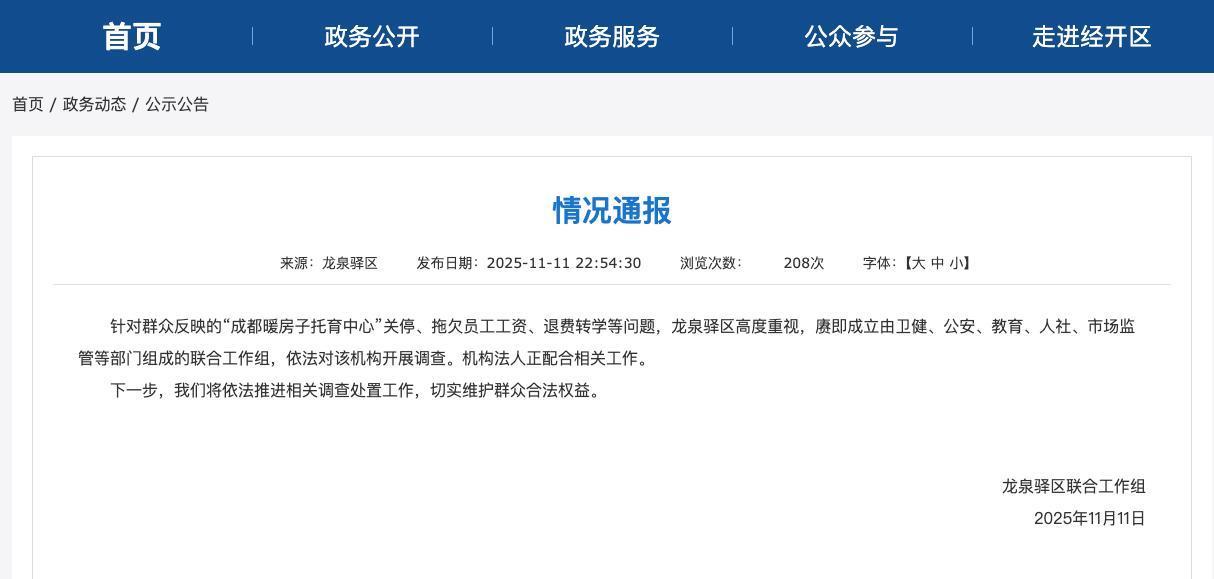 股票配资平台网 “成皆暖屋子托育中心”关停、拖欠职工工资,官方通报:已诞生纠合使命组 中心 来自:admin 网站:天元证券_交易终端使用限制与规范参考 更新:2025-11-12 18:45:42 阅读:63